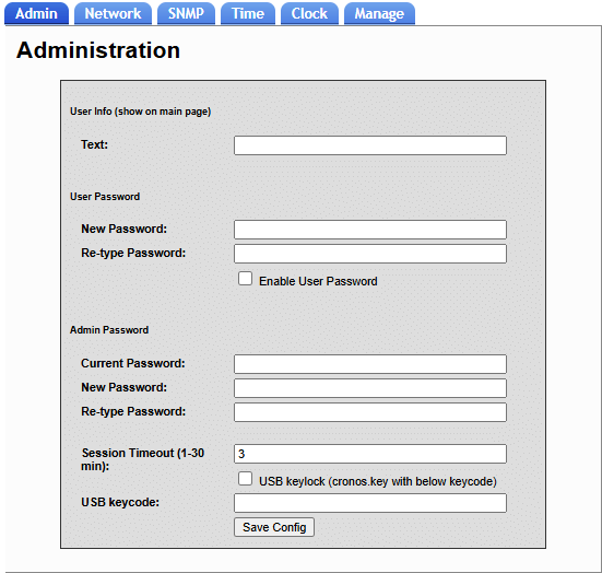 - Admin – Ustawienia hasła użytkownika/administratora,