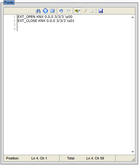 Przypisanie zdarzeń (zakładka Points Editor) do adresów KNX – w tym przykładzie na grupę 3/3/3.: