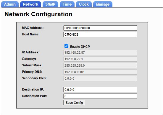 W przypadku zaznaczenia opcji Enable DHCP, moduł będzie próbował pobrać adres IP, maskę podsieci, bramę sieciową oraz adresy serwerów DNS automatycznie z serwera DHCP.
