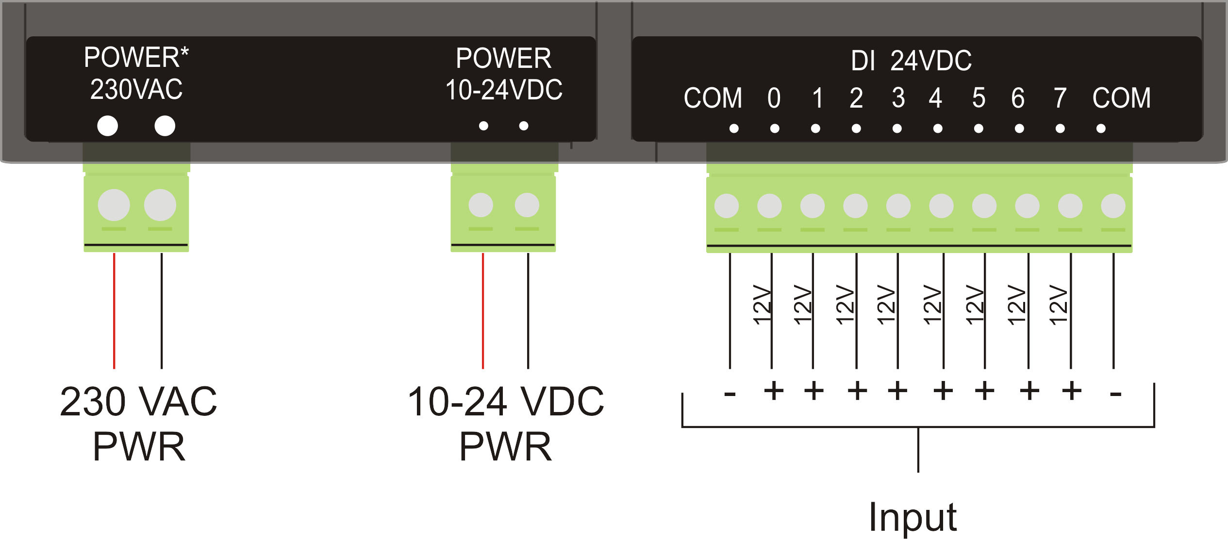 | Wejścia | 8 wejść cyfrowych Typ wejścia: izolowane galwanicznie NO, wstępnie spolaryzowane, zwierne/napięciowe |