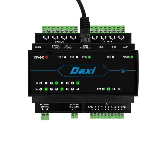 Jednym z kluczowych atutów Daxi jest jego zdolność do automatycznego reagowania na sygnały i odczyty z podłączonych czujników i wejść cyfrowych. Użytkownik może zaprogramować urządzenie do wykonywania konkretnych działań (akcje), takich jak sterowanie określonym wyjściem czy wysyłanie powiadomień w odpowiedzi na konkretny sygnał itp.