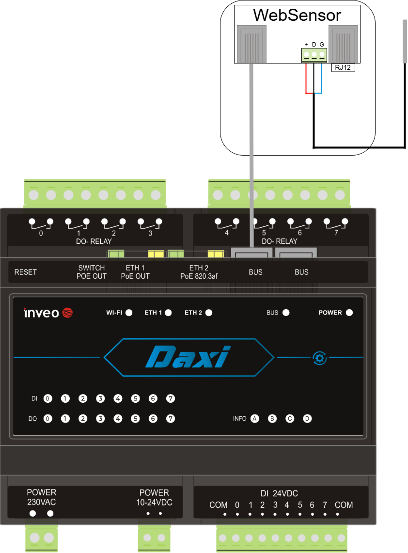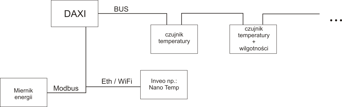 Źródłem sensora może być magistrala 3-przewodowa, urządzenie odpytywane przez protokół Modbus TCP/RTU (np.: mierniki, liczniki, termometry) lub inne urządzenie Inveo obsługujące czujniki. Każdy z wymienionych odczytów z zewnętrznych urządzeń może zostać przypisany jako sensor w urządzeniu Daxi i wykonywać wszystkie funkcje przynależne sensorom.