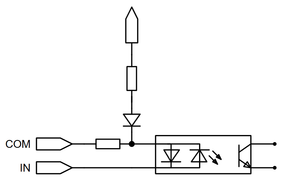 Schemat podłączenia w przypadku stosowania wejść typu optoizolowanego (wejście napięciowe 10-24V DC):