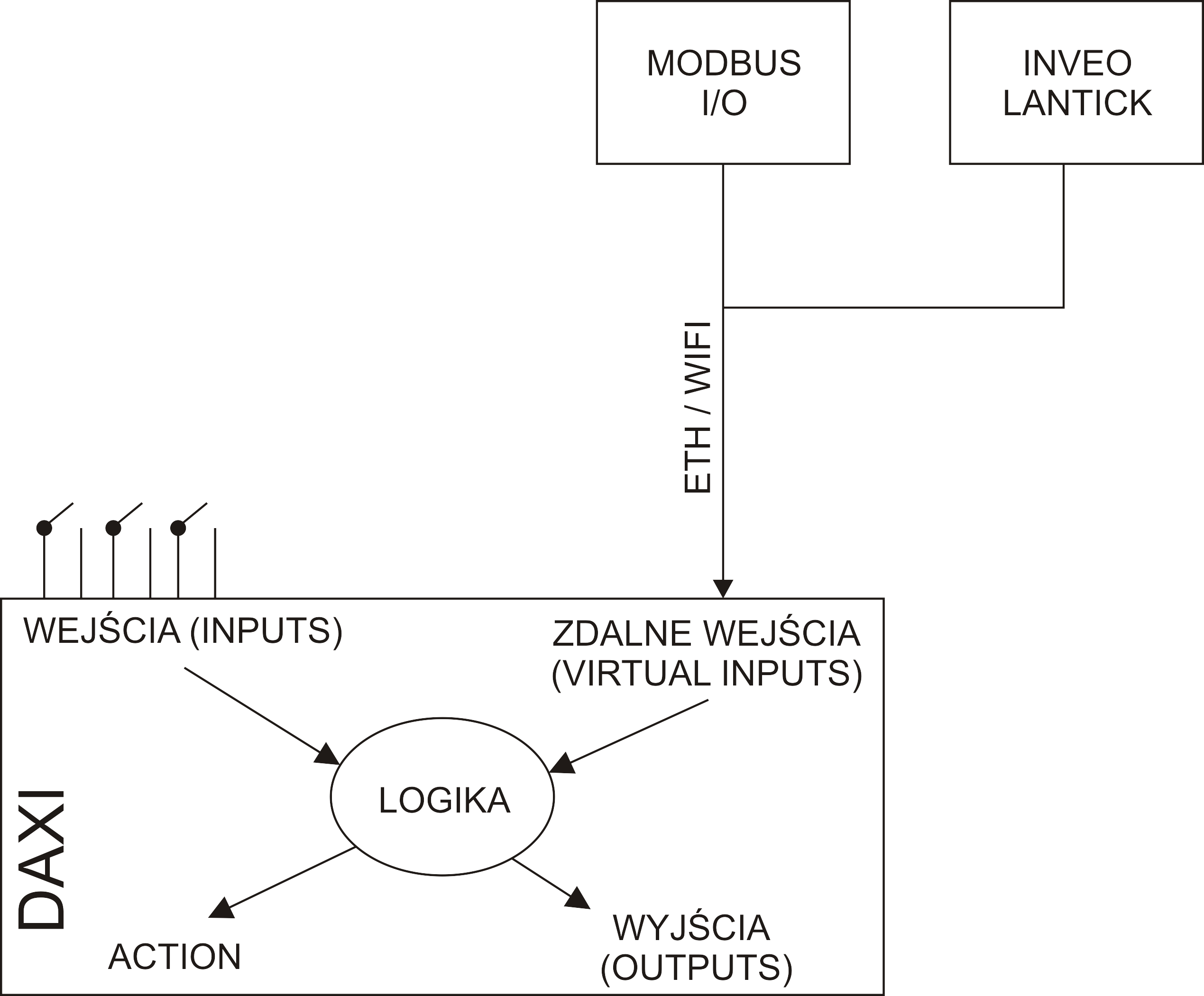 Urządzenie Daxi łączy w sobie programowalny kontroler I/O i kontroler czujników. Głównym zadaniem tego urządzenia jest zbieranie danych z czujników oraz wejść, ich przetwarzanie i wykonywanie odpowiednich operacji (akcji) wykonawczych.