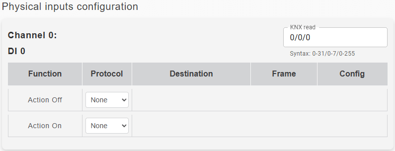 Stan wejść. range oznacza zakres wejść do wyświetlenia, off oznacza wartość dla stanu nieaktywnego, on oznacza wartość dla stanu aktywnego Przykład: pokazany zostanie stan dla IN 0-7 wartość nieaktywna to i, a aktywna to I |