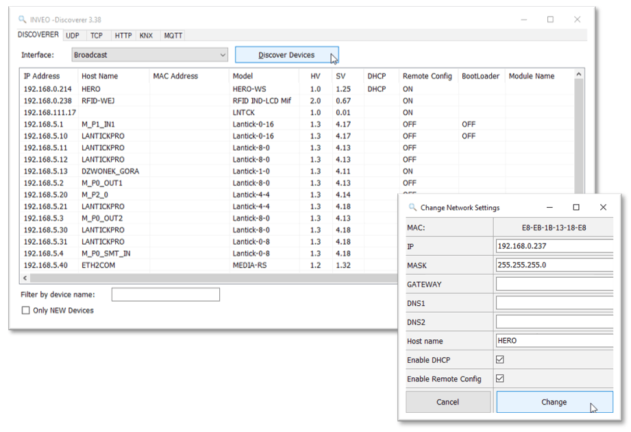 Zmiana adresu IP urządzenia poprzez program Discoverer
