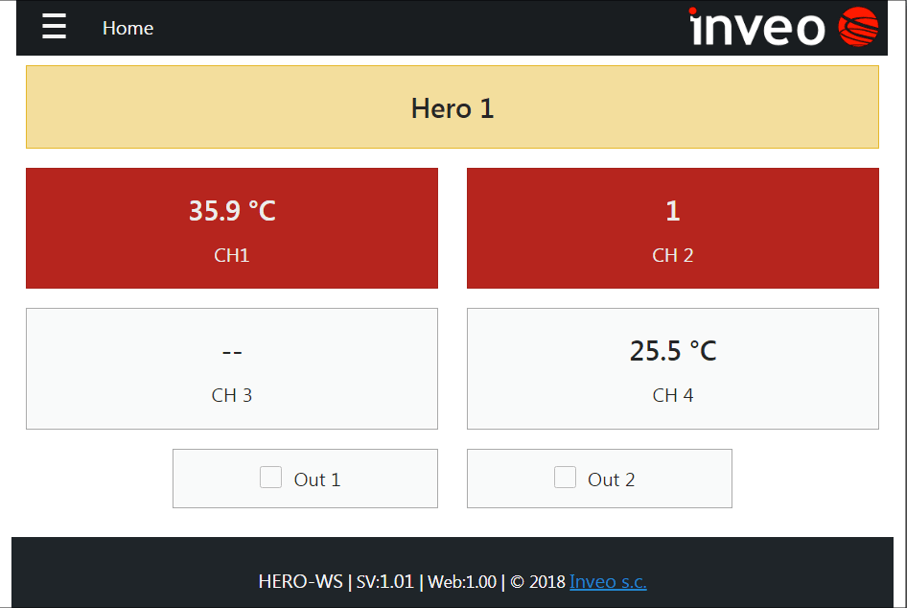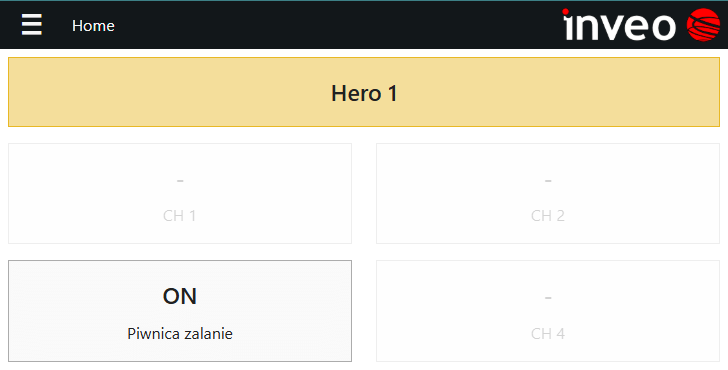 - Przejdź na stronę główną (Home) urządzenia Hero – powinien być na niej widoczny nowo dodany czujnik ze statusem OFF.
