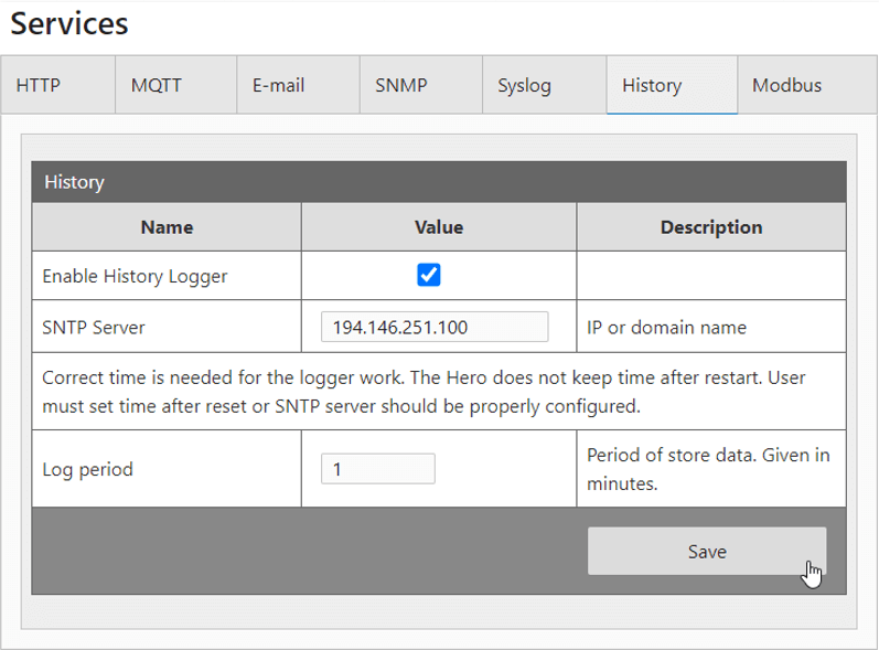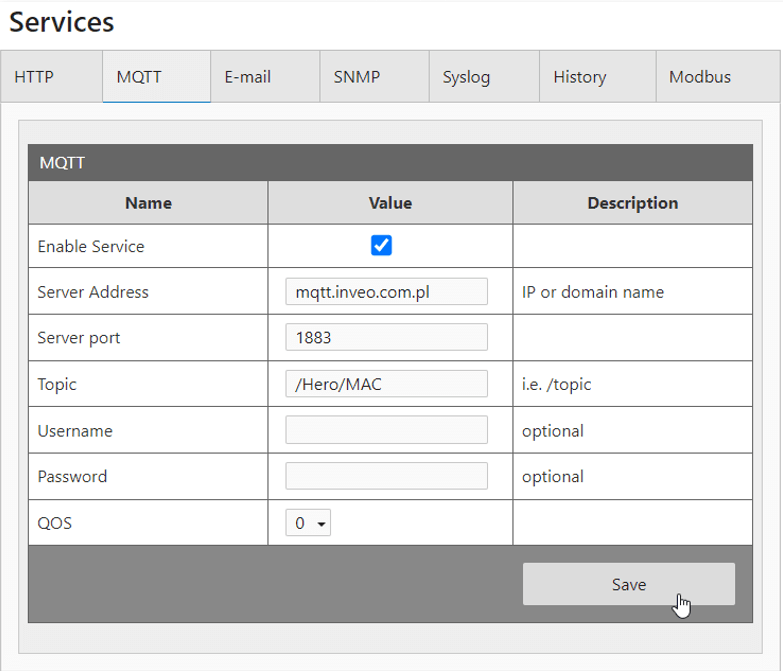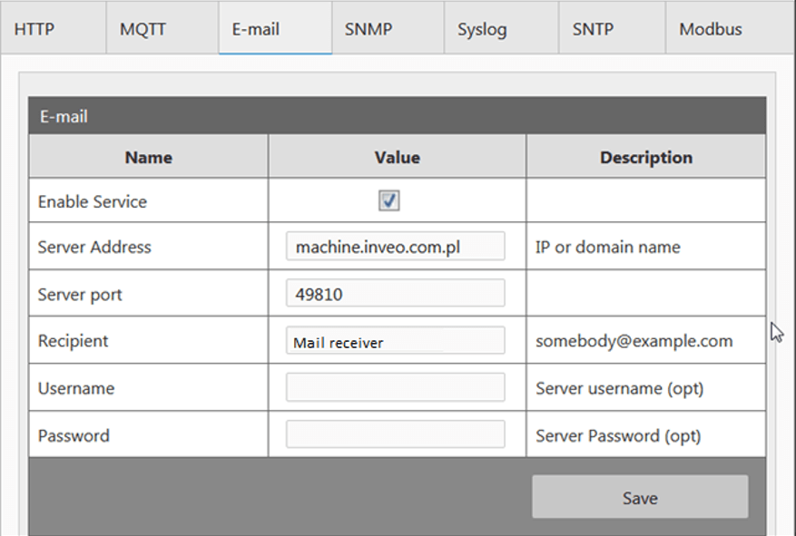 - W zależności od potrzeb zmień pozostałe ustawienia, ustal logowanie odczytów, czas wysyłania stanu oraz powiadomienia.