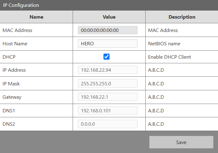 Aby włączyć lub wyłączyć obsługę DHCP na urządzeniu HERO: