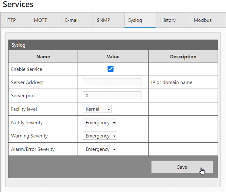 - Przez syslog,