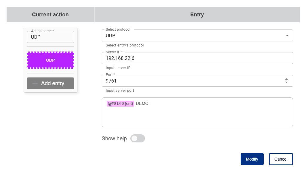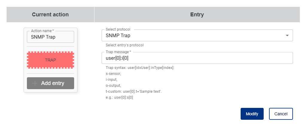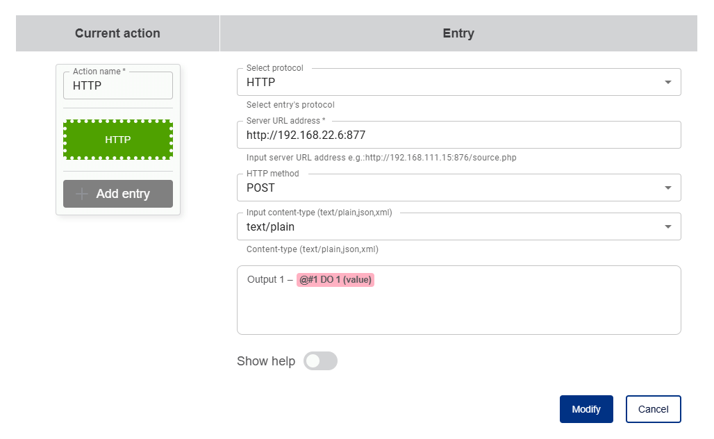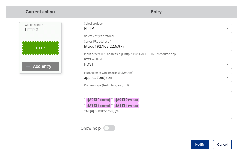 - W oknie Create a new action, dodaj akcję przyciskiem Add entry,