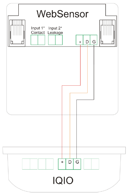 - Na potrzeby tego przykładu, do urządzenia podłączymy czujnik WebSensor Combo (pomiar temperatury i wilgotności, 2 wejścia cyfrowe Contact i Leakage):