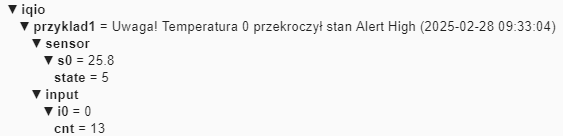 - iqio/temperatura = ... – Wartość odczytana z czujnika Sens 0, w tym wypadku temperatura,