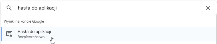 - W polu Przeszukaj konto Google, wprowadź hasła do aplikacji i wybierz pierwszy wynik: