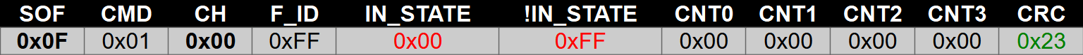 | 1000 | On1 | R | Stan wejścia 1 |