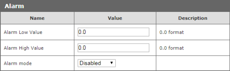 Użytkownik może skonfigurować offset, typy czujników, jednostki oraz alarmy.
