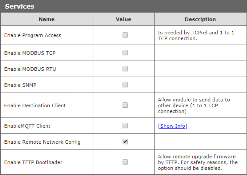 Moduł standardowo nasłuchuje na porcie TCP 9761.