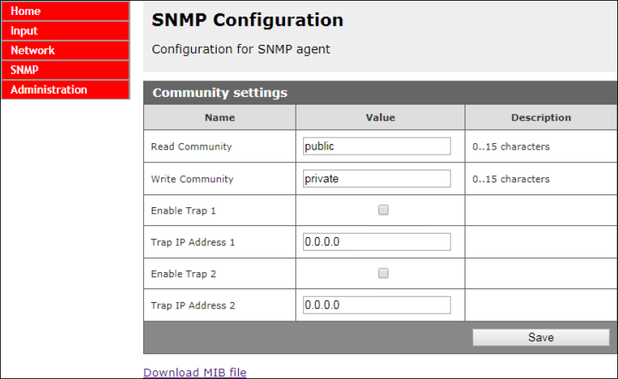 Załącz opcję MQTT zaznaczając opcję Enable MQTT Inveo w zakładce Administration. W zakładce Network, wprowadź adres brokera MQTT oraz port: