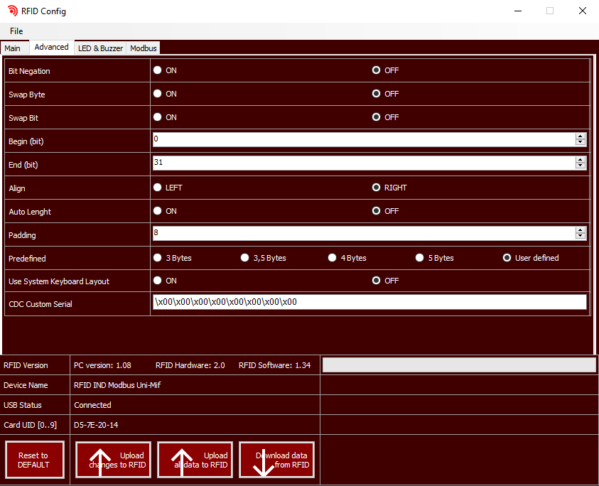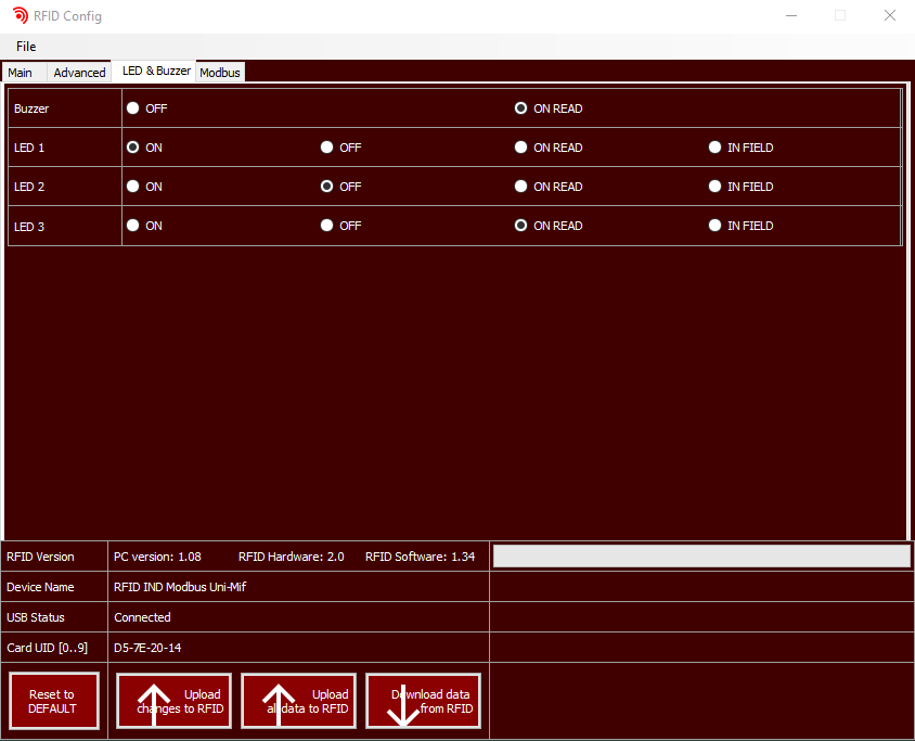 Po wprowadzeniu zmian, wyślij konfigurację do czytnika przy użyciu przycisku Upload data to RFID.
