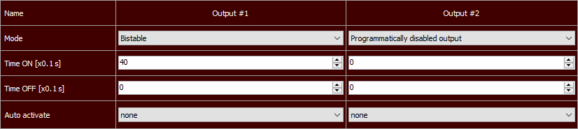 | Wyjścia | - Liczba wyjść: 2 - Typ wyjścia: przekaźnikowe NO, - Maksymalne obciążenie: 1A @ 30V DC |