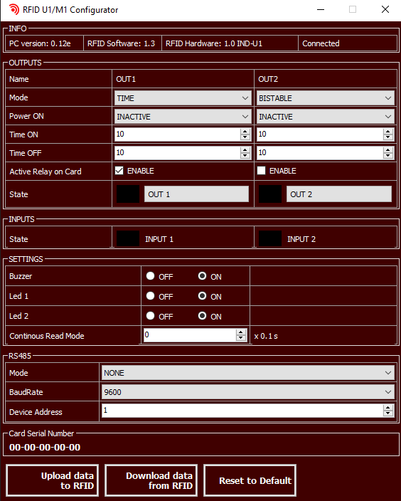 Urządzenia w wersji v1 należy konfigurować oprogramowaniem RFID U1 M1 Config.