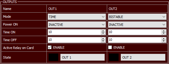 - Mode – Pole określa tryb pracy wyjścia. Do wyboru są następujące opcje: