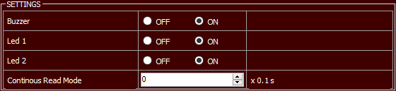 Zastosowanie ustawienia Continous Read Mode powoduje, że odczyt tego samego TAG’u jest możliwy dopiero po upływie zdefiniowanego czasu, natomiast inny TAG jest odczytywany natychmiastowo. Oznacza to, że ta sama karta nie zostanie przypadkowo odczytana kilka razy. Czas opóźnienia jest wyrażony w 0,1s.
