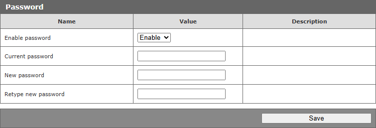 Utworzenie zapisu danych konfiguracyjnych wymaga hasła.