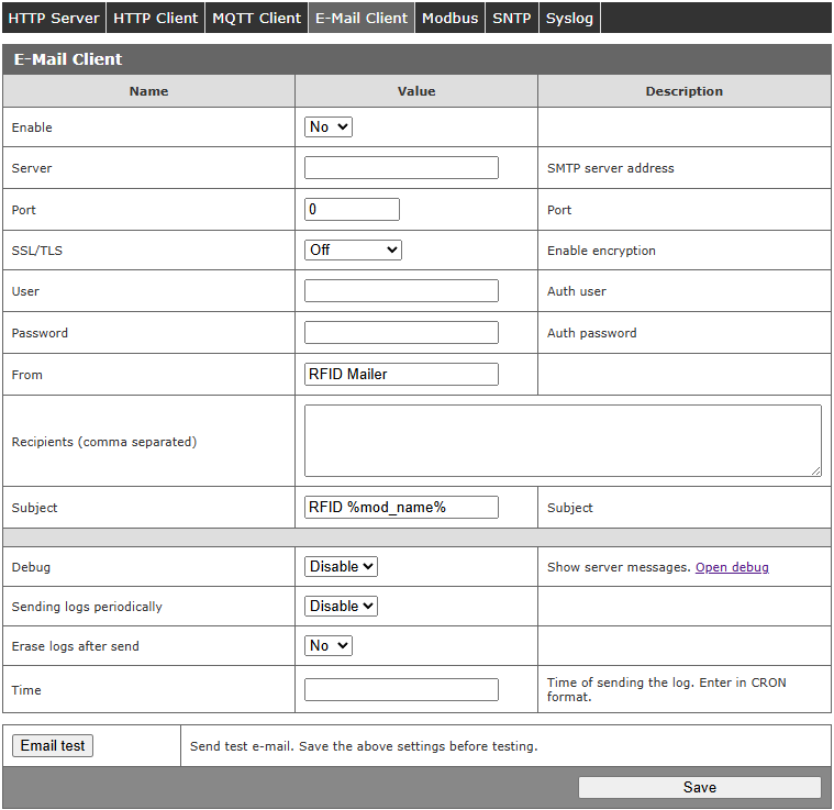 | Zasilanie | RFID RCP2 – 10-24V DC przez złącze śrubowe 3,5mm |