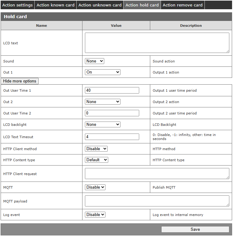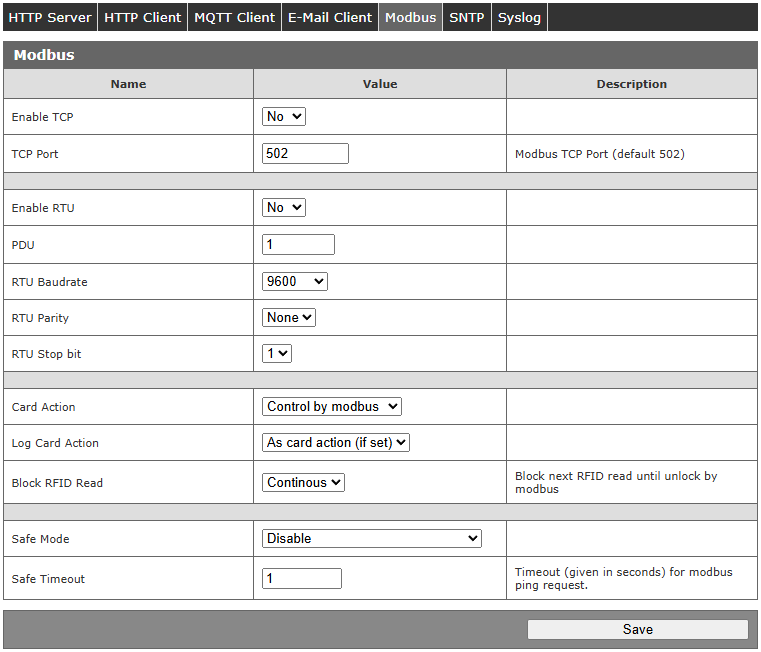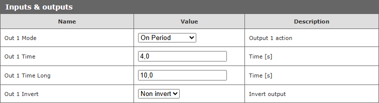 | 1 | R/W | Sterowanie wyjściem #1 wg ustawień z zakładki I/O Settings |
