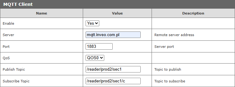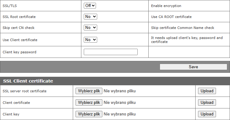- MQTT w trybie klient.