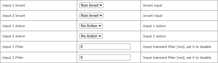 | Wejścia | - Liczba wejść: 2 - Typ wejścia: zwierne (NO) |