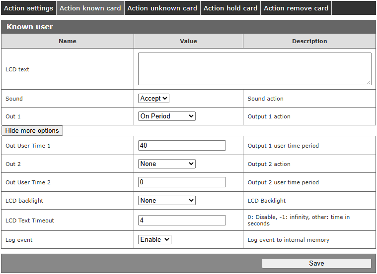 Dzięki obsłudze różnych protokołów komunikacyjnych, użytkownik ma możliwość pełnej kontroli nad czytnikiem, włącznie z wyświetlaczem, sygnalizatorem dźwiękowym oraz wejściami i wyjściami. Dodatkowo, dzięki wbudowanej pamięci, urządzenie umożliwia przechowywanie oraz dostęp do listy zapisanych logów. Z uwagi na wbudowaną pamięć, czytnik może pracować autonomicznie, bez konieczności korzystania z serwera zewnętrznego.