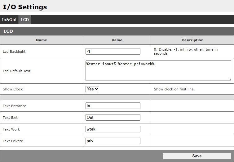 | 2000 | R/W | LCD Mode: 0 – praca autonomiczna -1 – sterowanie przez modbus Wartość od 1 do 65534 – czas wyświetlania tekstu wyrażony w sekundach. Po upłynięciu czasu, wyświetlacz przejdzie w tryb pracy autonomicznej |