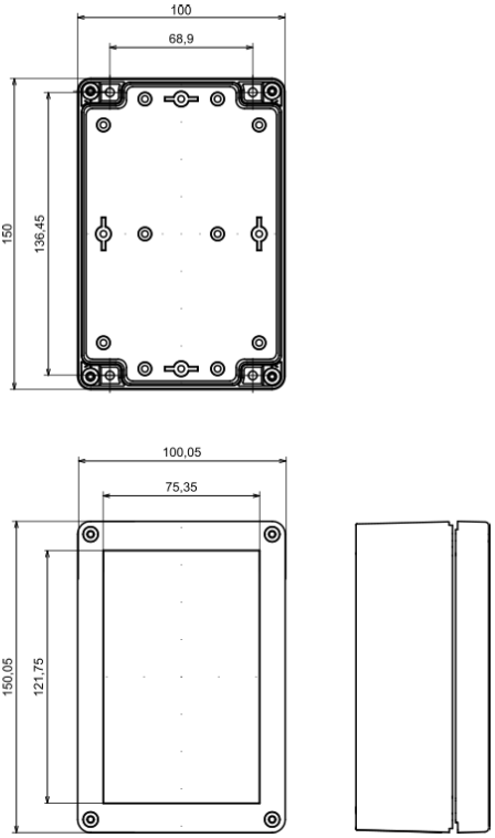 Ze względu na różnorodność instalacji oraz zróżnicowane potrzeby instalatorów urządzenie nie posiada żadnych otworów montażowych w obudowie. Otwory należy wykonać we własnym zakresie w tylnej części obudowy, w dowolnym miejscu – nie ma to wpływu na zachowanie gwarancji. Należy pamiętać o zastosowaniu odpowiedniego przepustu kablowego w celu zachowania szczelności.